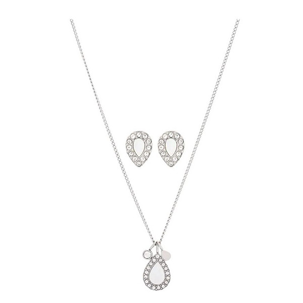 Fossil JF03765040 от колекция Jewelry e дамски сет от колие и обеци в сребристо и бяло, изработен от пелри (mop) и неръждаема стомана.