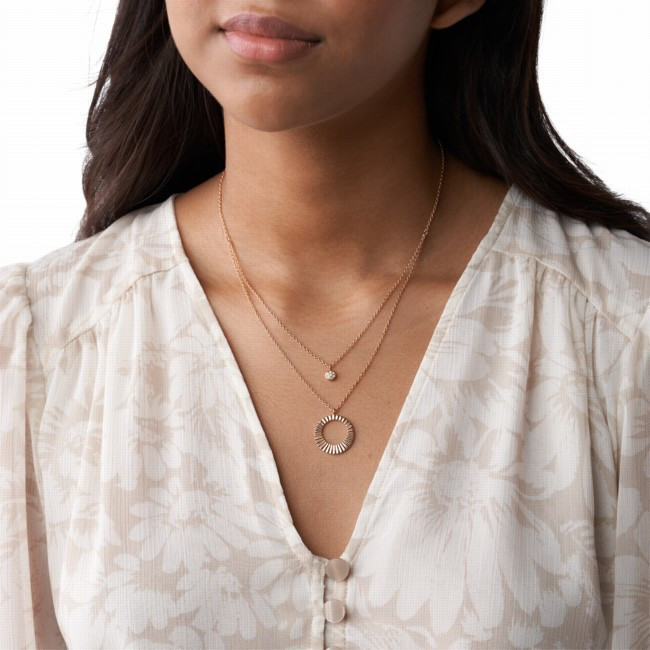 Fossil JF03546791 от колекция CLASSICS е дамско колие в розовозлатисто, изработено от неръждаема стомана и стъкло.