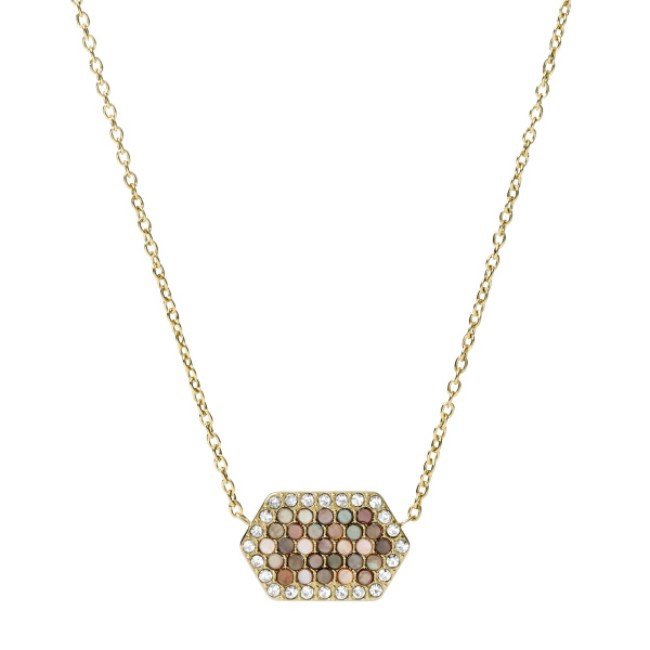 Fossil JF03864710 от колекция VAL е дамско колие в златисто и черно, изработено от неръждаема стомана и перла (mop).