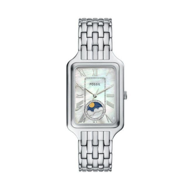 Дамски Часовник Fossil ES5400   Fossil ES5400 от колекция Raquel e дамски кварцов часовник с перлен правоъгълен, north-south циферблат, сребрист корпус от неръждаема стомана с диаметър 29 mm и сребриста верижка 14 mm, изработена от неръждаема стомана.