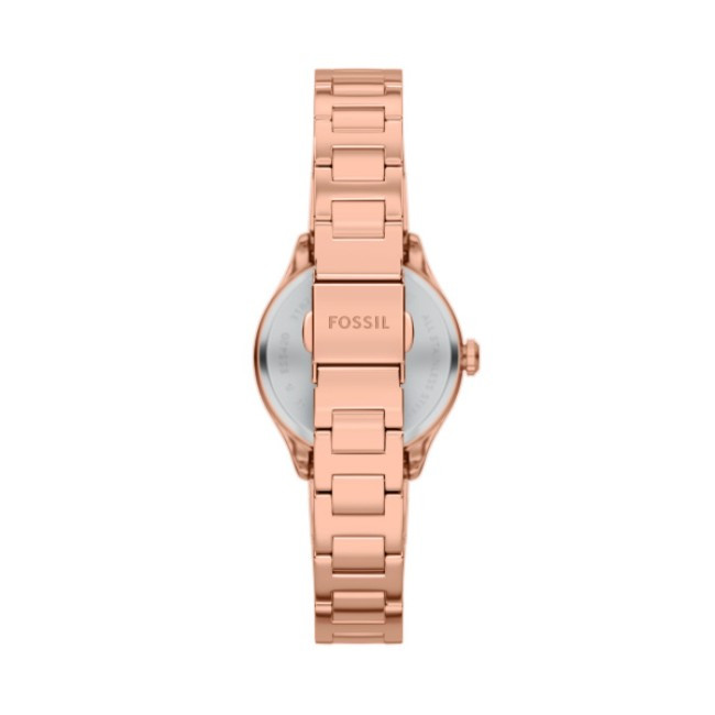 Дамски Часовник Fossil ES5420   Fossil ES5420 от колекция Gilmore e дамски кварцов часовник със сребрист кръгъл циферблат, розовозлатист корпус от неръждаема стомана с диаметър 28 mm и розовозлатиста верижка 14 mm, изработена от неръждаема стомана.