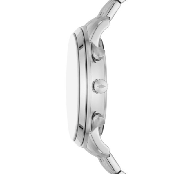 Fossil FS6025 от колекция Neutra e мъжки кварцов часовник със син кръгъл циферблат, сребрист корпус от неръждаема стомана с широчина 44 mm и сребриста верижка 22 mm, изработена от неръждаема стомана.