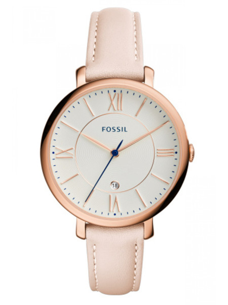 Дамски Часовник Fossil ES3988   Fossil ES3988 от колекция Jacqueline e дамски кварцов часовник с бял кръгъл циферблат, розовозлатист корпус от неръждаема стомана с диаметър 36 mm и розова каишка 14 mm, изработена от естествена кожа.