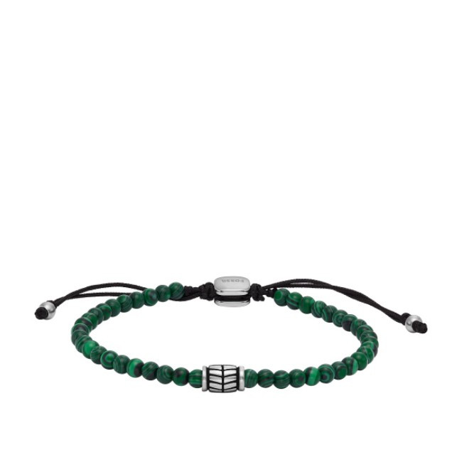 Fossil JF04415040 от колекция JEWELRY е мъжка гривна в сребристо и зелено, изработена от неръждаема стомана и други.