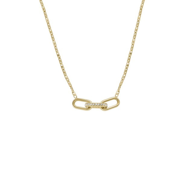 Fossil JF04523710 от колекция HERITAGE е дамско колие в златисто, изработено от неръждаема стомана и стъкло.