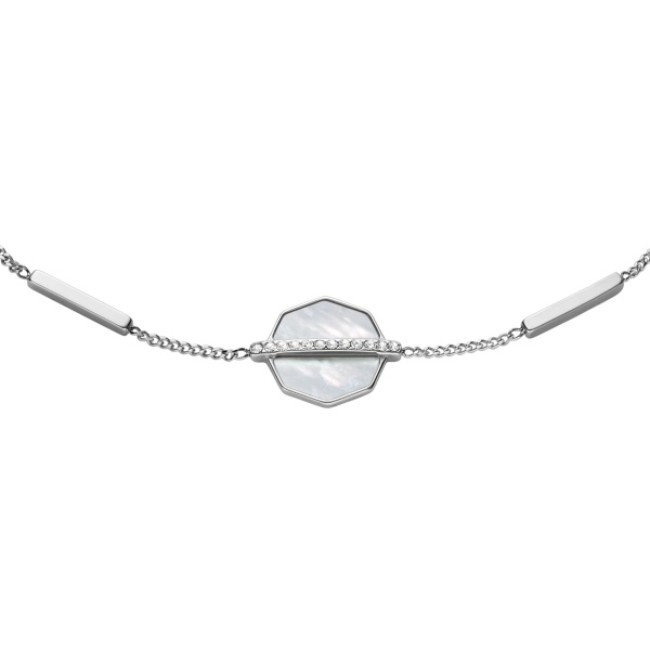 Дамска Гривна Fossil JF04910040   Fossil JF04910040 от колекция Jewelry e дамска гривна в сребристо и бяло, изработена от пелри (mop) и неръждаема стомана.