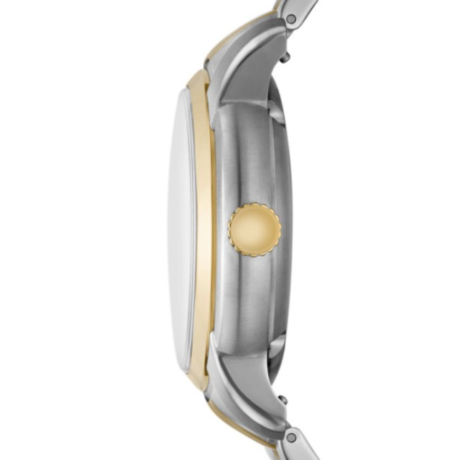 Fossil ME3230 от колекция Fossil Heritage e мъжки автоматичен часовник със син кръгъл циферблат, сребрист корпус от неръждаема стомана с широчина 43 mm и многоцветна верижка 22 mm, изработена от неръждаема стомана.