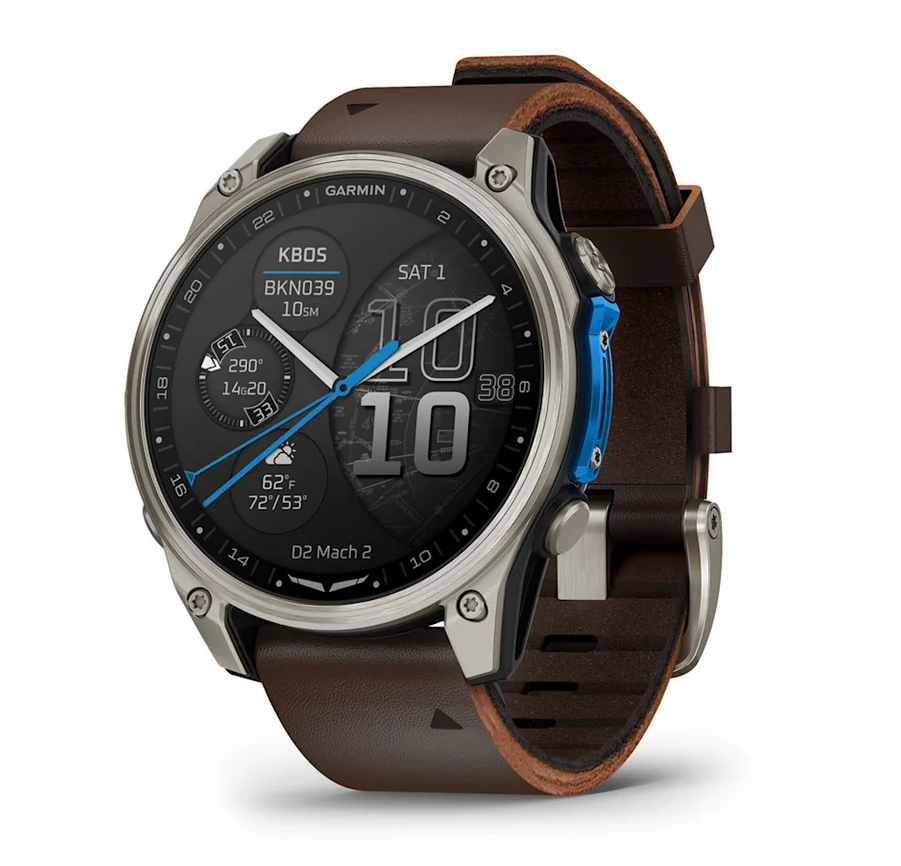 Проектиран за живот в света на полетите, D2 Mach 2 е най-високоразвитият авиаторен смарт часовник Garmin до момента. Той съчетава класически стил с ярък AMOLED сензорен дисплей, усъвършенствано картографиране на полета, гласови команди и мощно вградено LED фенерче — плюс функции за здраве и фитнес, които помагат на пилотите да се представят по най-добрия начин.