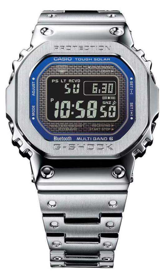 Casio GMW-B5000D-2ER е модерна интерпретация на първия G-SHOCK от 1983 г., сега в изцяло метален корпус и смарт функционалности. Със соларно захранване, Bluetooth свързаност и радиосверяване, този часовник комбинира класика с технологии от бъдещето.