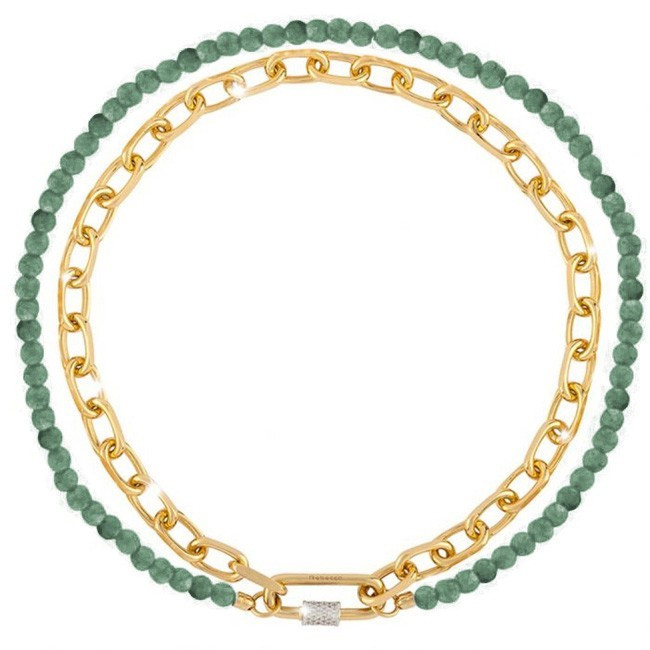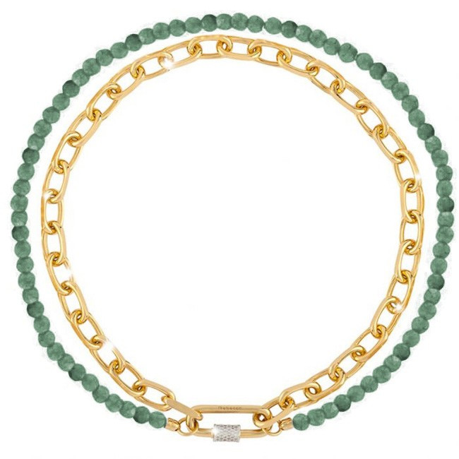 Дамска Гривна Rebecca BPABOD22   Rebecca BPABOD22 от колекция Palermo е златиста дамска гривна, изработена от бронз и естествен нефрит с покритие от жълто злато.