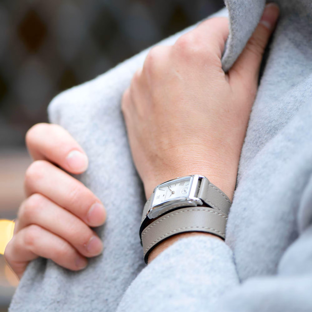 Часовник HAMILTON American Classic Ardmore Quartz H11221914 е елегантен дамски аксесоар със силно изразено ретро вдъхновение. Този правоъгълен модел от серията American Classic впечатлява с корпус от благородна стомана, класически светъл циферблат и тънки сребристи индекси. Работи с кварцов механизъм за прецизна работа и изисква минимална поддръжка. Идеалният избор за жени с усет към класиката и изтънчения стил.