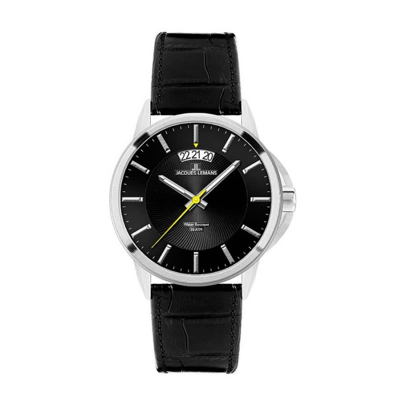 Jacques Lemans 1-1540A – Класически мъжки часовник с черен циферблат и кожена каишка