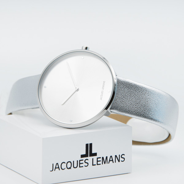 Часовник Jacques Lemans 1-2056A – Дамски елегантен часовник със сребриста кожена каишка от колекцията DESIGN COLLECTION