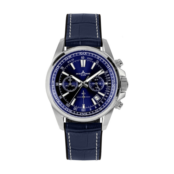 Jacques Lemans 1-2117C е модерен мъжки хронограф, съчетаващ спортна визия с функционалност. Синият циферблат и каишката от естествена кожа в комбинация със силикон предлагат едновременно стил и комфорт. Корпусът с диаметър 44 мм и водоустойчивост до 20 ATM правят този модел идеален както за активен начин на живот, така и за ежедневна употреба.