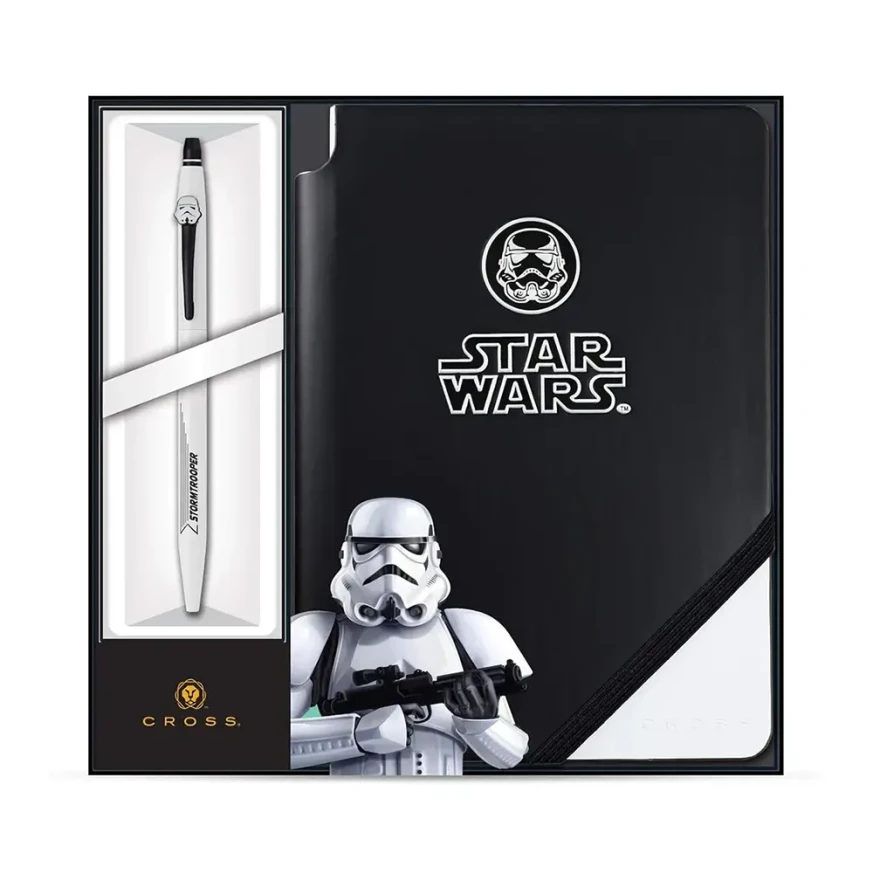 Този комплект Cross Star Wars Stormtrooper e вдъхновен от един от най-емблематичните филмови герои от поредицата. Ролерът разполага с тънък, лек профил, допълнен с детайли. Комплектът включва и тефтер Cross Jotzone с привличаща вниманието емблема Stormtrooper на предната корица.