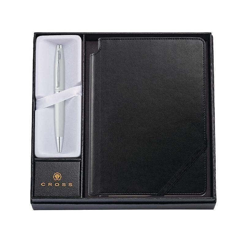 Комплект химикалка Cross Calais Satin Chrome + черен тефтер Cross А5, в подаръчна кутия