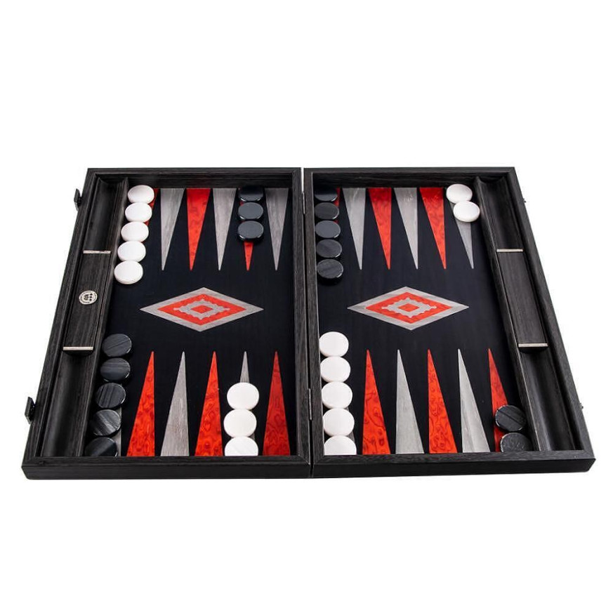 Размери на таблата (затворена) : 48 x 30 см; Размери на таблата (отворена) : 60 x 48 см; Тегло: 2.8 кг; Игрално поле: естествен фурнир от черен дъб с червен бурл и сиви капии + отделение за пуловете; Капак: естествен фурнир от черен дъб; Рамка на таблата: ламинирана дървесина;