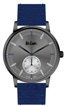Мъжки часовник Lee Cooper с елегантен дизайн от колекцията Classic. Корпус от супер метал и стъкло минерал-кристал. Тъмносиня кожена каишка. Черен аналогов дисплей с допълнителен дисплей за секундите. Задвижва се от кварцов механизъм. Водоустойчивост 3 ATM - допускат се леки пръски, не се препоръчва обилно мокрене.
