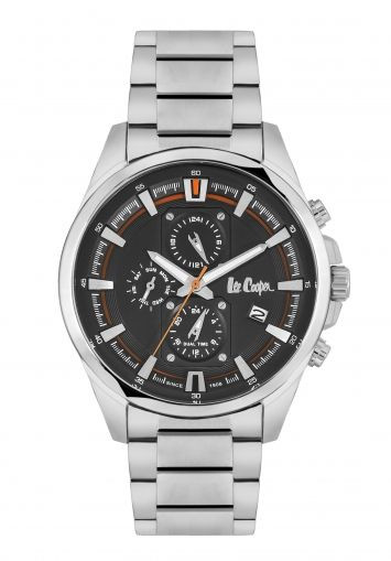 Мъжки часовник Lee Cooper от колекцията Classic Dual Time. Моделът е с черен мултифункционален дисплей с показатели за дата, ден и двойно време. Корпус от супер метал и стъкло минерал-кристал. Сребриста верижка от неръждаема стомана. Задвижва се от кварцов механизъм. Водоустойчивост 3 ATM - допускат се леки пръски, не се препоръчва обилно мокрене.