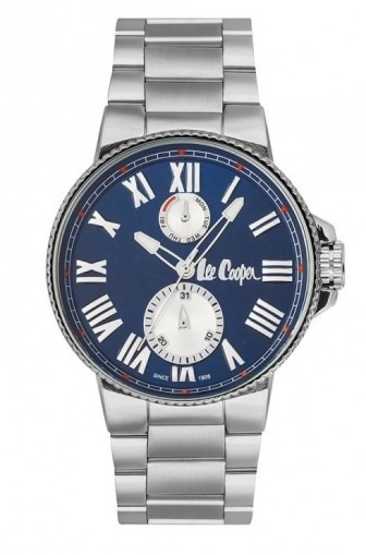 Мъжки часовник Lee Cooper с модерна визия. Моделът е с тъмносин дисплей с показатели за дата и ден от седмицата. Корпус от супер метал. Верижка от неръждаема стомана. Стъкло минерал-кристал. Задвижва се от кварцов механизъм. Водоустойчивост 3 ATM - допускат се леки пръски, не се препоръчва обилно мокрене.