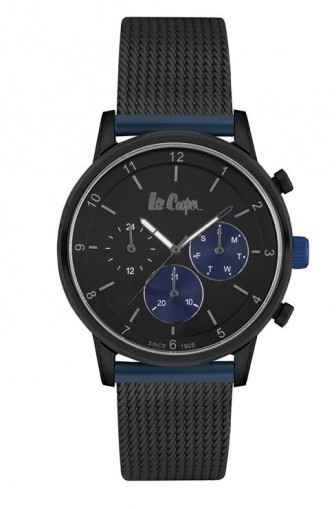 Мъжки часовник Lee Cooper с мултифункционален дисплей. Корпус от супер метал. Верижка от неръждаема стомана. Стъкло минерал-кристал. Кварцов механизъм. Водоустойчивост 3 ATM - допускат се леки пръски, не се препоръчва обилно мокрене.
