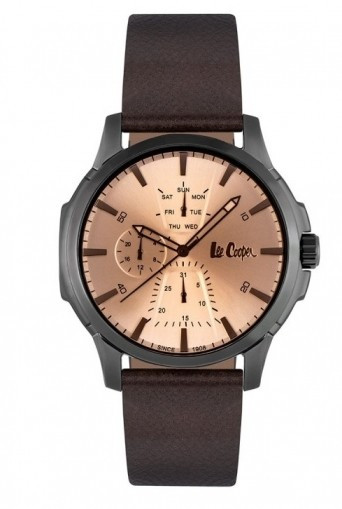 Мъжки часовник Lee Cooper от колекцията Classic Multifunction. Корпус от супер метал. Каишка от естествена кожа. Мултифункционален дисплей с кафяво минерално стъкло. Задвижва се от кварцов механизъм. Водоустойчивост 3 ATM - допускат се леки пръски, не се препоръчва обилно мокрене.