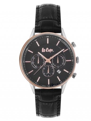 Елегантен мъжки часовник Lee Cooper от колекцията Classic Dual Time. Моделът е с мултифункционален дисплей с показатели за дата, ден и двойно време. Корпус изработен от супер метал. Черна кожена каишка. Стъкло минерал-кристал. Кварцов механизъм. Водоустойчивост 3 ATM - допускат се леки пръски, не се препоръчва обилно мокрене.
