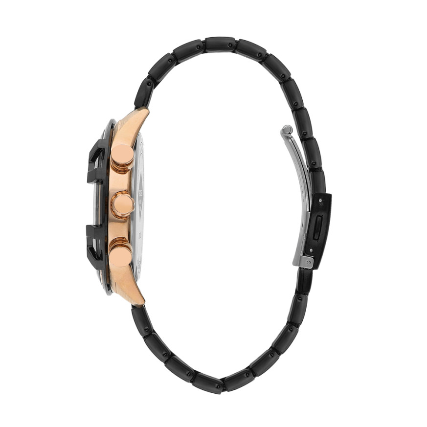 Спортно-елегантен мъжки часовник Lee Cooper с дисплей тип хронограф. Корпус от супер метал, в комбинация с метална верижка. Стъкло минерал-кристал. Задвижва се от кварцов механизъм. Водоустойчивост 5 ATM - допускат се леки пръски и взимане на душ, не се препоръчва обилно мокрене.