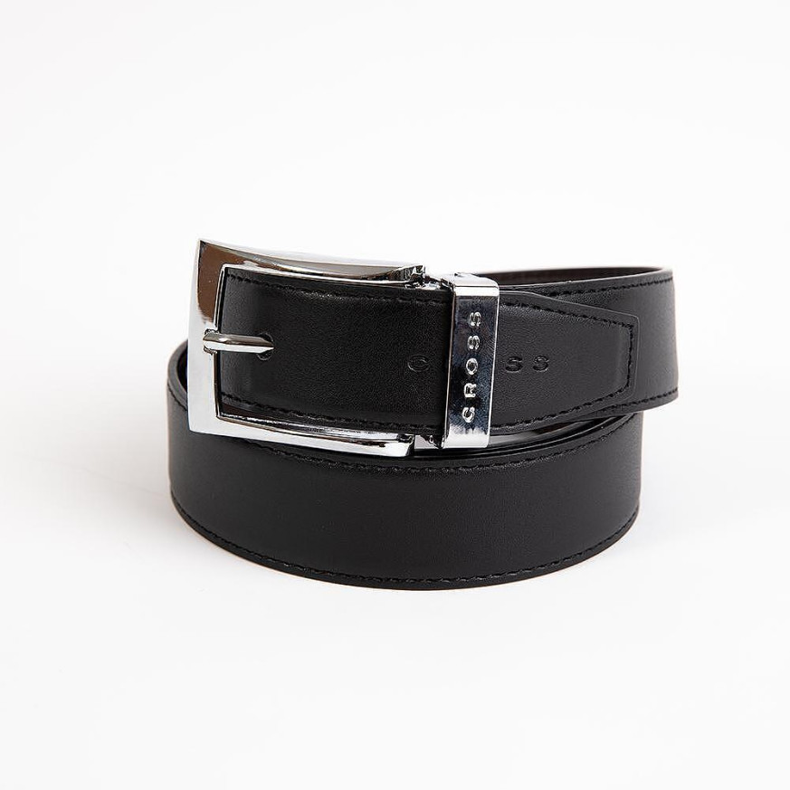 Мъжки кожен колан Cross Meister Mark Steinless steel, двулицев, черен/кафяв