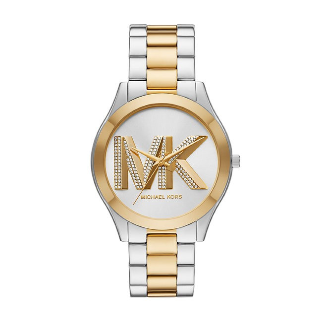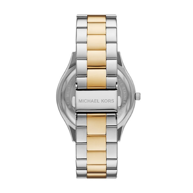 Дамски Часовник Michael Kors MK4735   Michael Kors MK4735 от колекция Slim Runway e дамски кварцов часовник с многоцветен кръгъл циферблат, сребрист корпус от неръждаема стомана с диаметър 42 mm и двуцветна верижка 30 mm, изработена от неръждаема стомана.