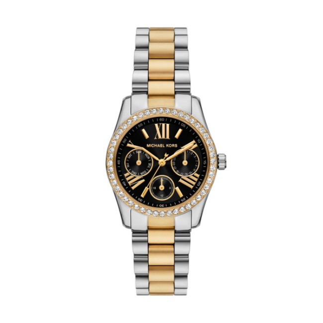 Дамски Часовник Michael Kors MK4925   Michael Kors MK4925 от колекция Lexington e дамски кварцов часовник с черен кръгъл циферблат, двуцветен корпус от неръждаема стомана с диаметър 33 mm и двуцветна верижка 16 mm, изработена от неръждаема стомана.