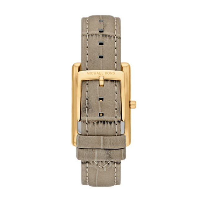Дамски Часовник Michael Kors MK4964   Michael Kors MK4964 от колекция Essex e дамски кварцов часовник с бял правоъгълен, north-south циферблат, златист корпус от неръждаема стомана с диаметър 26 mm и телесен цвят каишка 16 mm, изработена от естествена кожа.