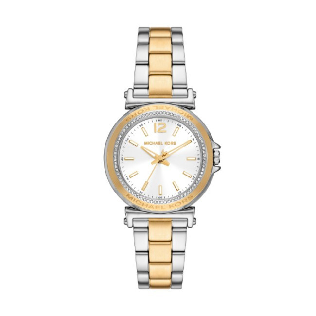 Часовник Michael Kors MK7492 е дамски модел от колекция Maren с бял кръгъл циферблат, двуцветен корпус и елегантна верижка от благородна стомана – стилна комбинация от класика и модерност.