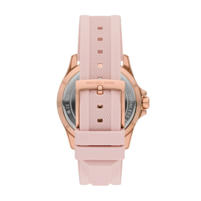 Дамски Часовник Michael Kors MK7536   Michael Kors MK7536 от колекция Everest e дамски кварцов часовник с многоцветен кръгъл циферблат, розовозлатист корпус от неръждаема стомана с диаметър 40 mm и розова каишка 18 mm, изработена от силикон.
