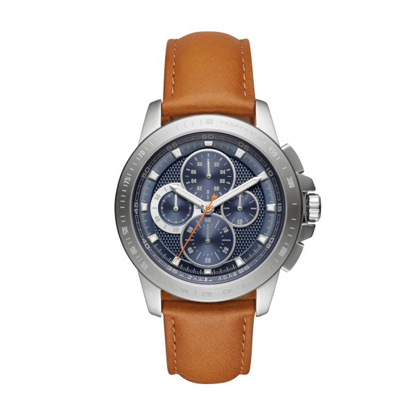 Michael Kors MK8518 от колекция Ryker e мъжки кварцов часовник със сребрист кръгъл циферблат, сребрист корпус от неръждаема стомана с широчина 43 mm и сребриста каишка 24 mm, изработена от естествена кожа.