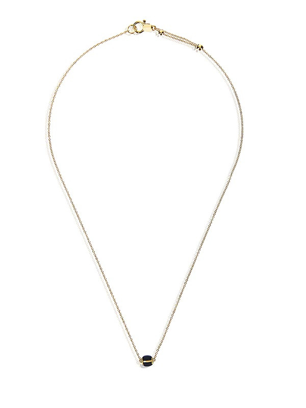 Колие от 18kt злато   и черен оникс , увенчани с елегантни диамантени детайли. Изисканата златна изработка играе със светлина, отразявайки я огледално  и обхваща скъпоценния камък като черупка, запечатвайки срещата между Природата и майсторството.