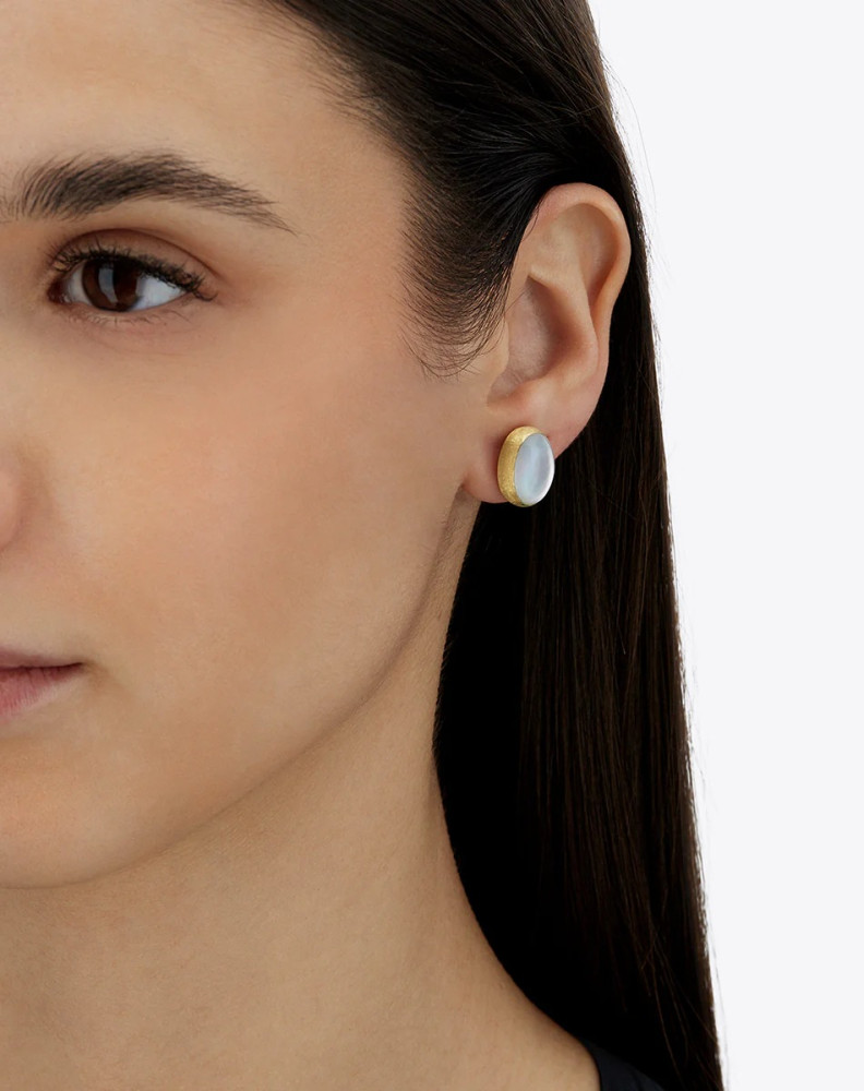 Лятна нощ, нежният бриз върху кожата ви, небето, осветено от светлината на луната. В нюанса Dolcevita, седефът се слива с ръчно гравирано 18-каратово злато, създавайки обеци с вечен чар. Планинският кристал и седефът подсилват ослепителния блясък на златото, генерирайки фини, преливащи се отблясъци.