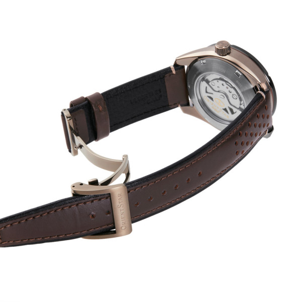 Моделът Orient Star RE-AV0A04B е част от колекцията Avant-Garde Skeleton и представлява мъжки автоматичен часовник, който съчетава елегантен дизайн с иновативна технология. С корпус от благородна стомана с PVD покритие в бронзов цвят и черен скелетен циферблат, този модел предлага стилна визия, подходяща както за ежедневна употреба, така и за специални поводи. Механизмът F6F44 с 24 камъка, видим през отворената част на циферблата и прозрачния заден капак, осигурява резерв на енергия до 50 часа. Сапфиреното стъкло с антирефлексно покритие осигурява висока устойчивост на надрасквания, а водоустойчивостта до 100 метра позволява носене при плуване и други водни активности. С 2-годишна международна гаранция, Orient Star RE-AV0A04B е надежден избор за всеки мъж, търсещ стил и функционалност в едно.