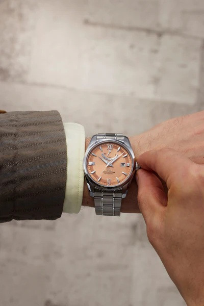 Този модел въплъщава непретенциозната елегантност на земните тонове. Медният циферблат, напомнящ златистите пясъци на пустинята, съчетава топлина и изтънченост, докато сапфир-кристалът с антирефлексно покритие гарантира кристална яснота и усещане за лукс. Корпусът впечатлява с изискана комбинация от матови и огледални повърхности, придавайки му модерен, но класически облик, а металната верижка от висококачествена неръждаема стомана SUS316L допълва визията със здравина и стил.