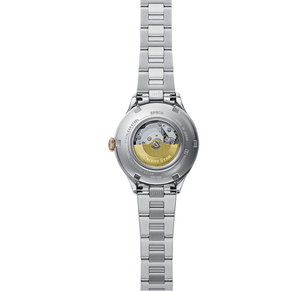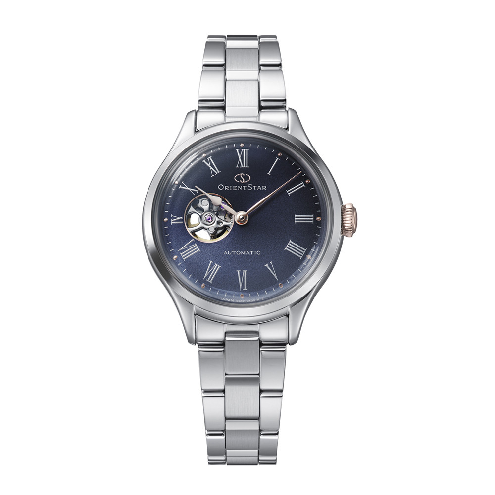 Лимитиран модел дамски часовник Orient Star с класическа визия, част от серията Keshiki, което означава красива природа на японски език. Дизайнът е вдъхновен от цветовете на снежната светлина. Циферблатът се отличава с наситените сиво-сини нюанси, наподобяващи мекото сияние на снежна вечер, когато отражението на светлината нежно озарява тъмнината. Корпусът и верижката са изработени от неръждаема стомана. Дисплеят е аналогов с отвор, позволяващ да се наблюдава част от механизма. Стъклото е минерал-кристал. Задвижва се от автоматичен механизъм ( с възможност за ръчно навиване)  Cal.55C22 с резервна мощност 40 часа. Диаметър на корпуса 30.5 мм. Водоустойчивост 5 ATM - допускат се леки пръски и взимане на душ, не се препоръчва обилно мокрене.