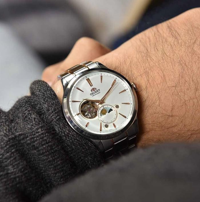 Часовник ORIENT RA-AS0101S – Мъжки елегантен автоматик с функция "Слънце и Луна" и полу-скелетън дисплей