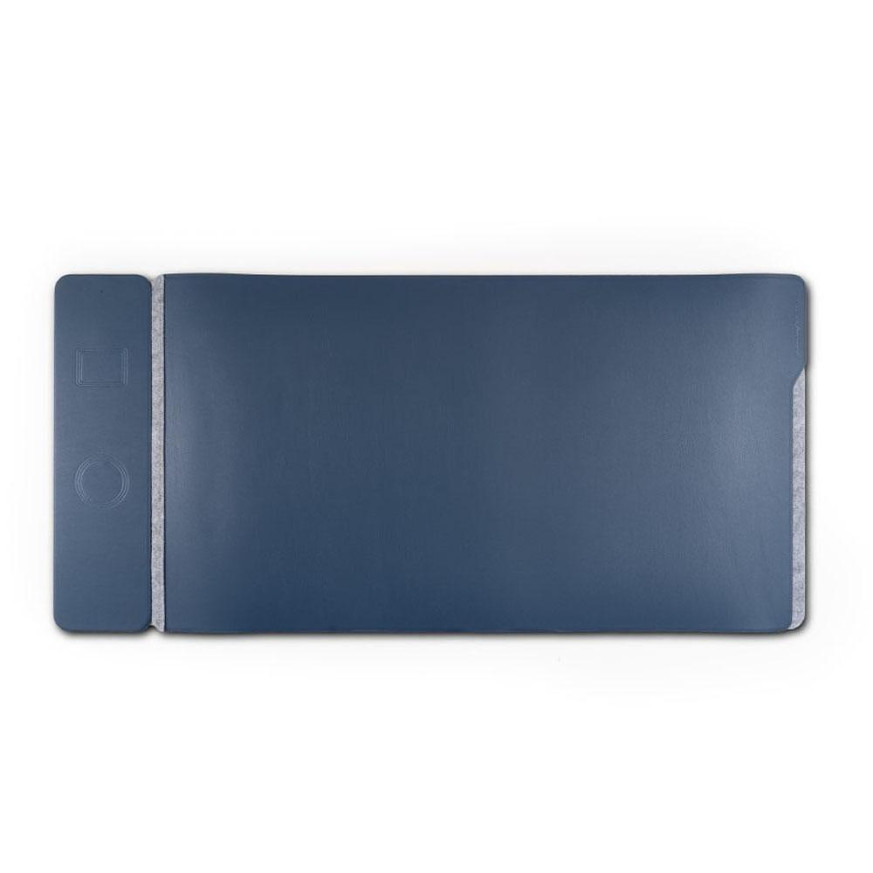 Размери: 76,4 х 37 см Двустранен реверсивен дизайн: една страна от екологична синя кожа и друга от филц за гъвкава и стилна употреба Модулна магнитна система, позволяваща индивидуално планиране на пространството Водоустойчивата повърхност предпазва от пръски и повреди 15 W бързо безжично зареждане за телефон (съвместим с MagSafe) и 5 W за слушалки Отделение за бележки и листа, за по-добра организация и чисто работно пространство Широка съвместимост с устройства на Apple (iPhone 16/15/14/13/12, AirPods), както и телефони и слушалки с Android, които поддържат безжично зареждане