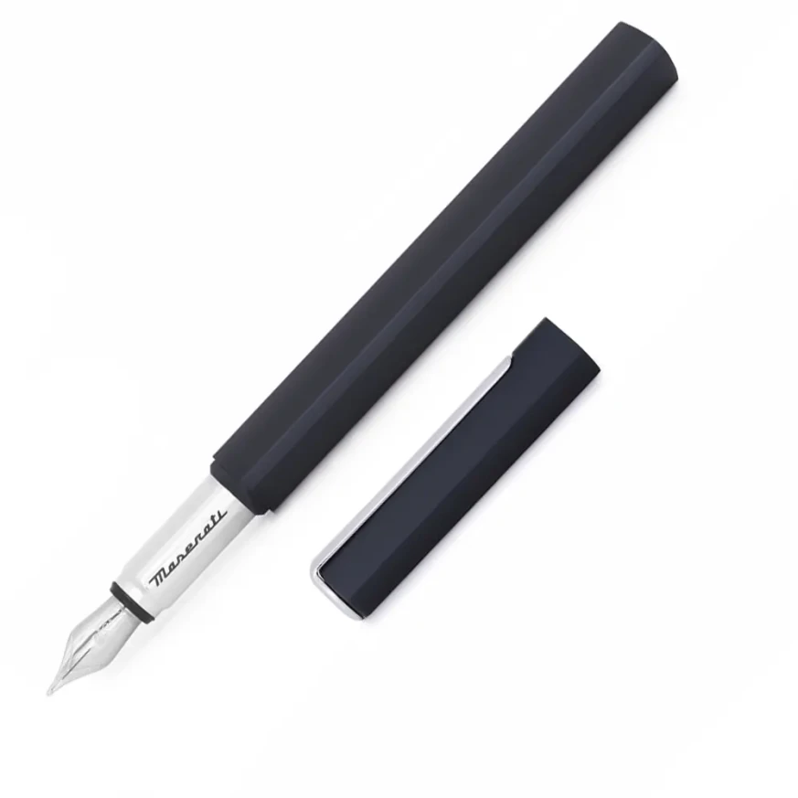 Призив към върхови постижения. Pininfarina Segno прави значима стъпка в сферата на международния дизайн от световна класа, като постига съюз с емблематичната фирма за луксозни спортни автомобили Maserati. Партньорство, чиято сила се намира в общата визия и споделените ценности: от непрекъснатите изследвания за високи постижения във всеки детайл, до перфектния баланс между занаятчийската традиция и иновативните техники. Амбициозната цел е да се създаде най-изисканият набор от инструменти за писане, вдъхновени от бижутата на четири колела на емблематичния "тризъбец". Нов начин за разбиране на лукса, затворен в престижен обект със силна стилистична идентичност. Роден от щастливата връзка на Pininfarina Segno и Maserati, PF One Fountain Maserati Edition е инструмент за писане, подчертан с елегантност и основни линии. Динамичните и непрекъснато усъвършенствани черти придават на продукта неговата безпогрешна индивидуалност, допълнително подсилена от класическато среднощно синьо и тризъбеца на Maserati.