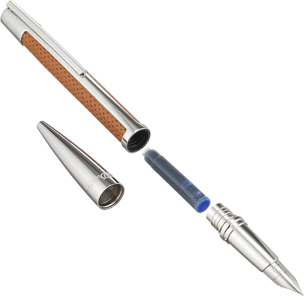 • Корпусът на писалката е от паладиево покритие, естествена перфорирана кожа, лого S.T.Dupont