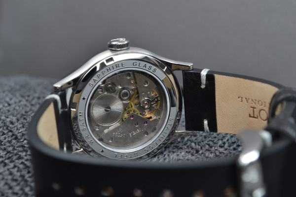 Корпусът е изработен от неръждаема стомана, размерът – 38,5 мм в диаметър – отговаря на революционните времена. Без предното стъкло корпусът е с размери само 9,15 мм и разполага с механичен механичен механизъм с ръчно навиване на Vostok, калибър 2409, който също води началото си от миналия век. Движението се вижда през стъкления гръб на кутията. Тя беше оставена напълно недовършена, за да запази носталгичния си характер и да не бъде засегната от допълнителни довършителни работи.