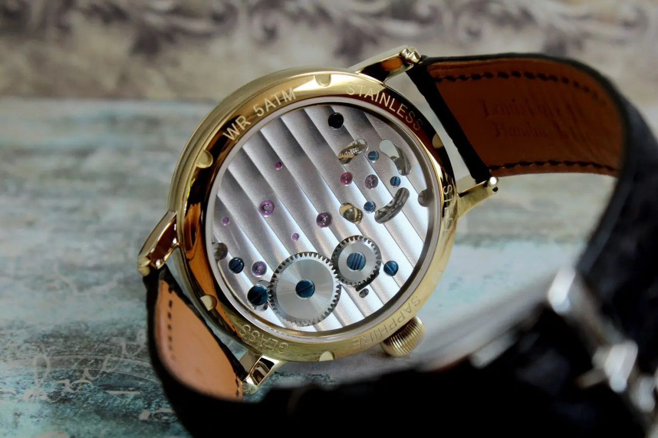 За да бъдат подходящо почетени тези величествени фигури, тяхното изображение е изработено с висока прецизност чрез 3D печат, като техниката е приложена в няколко слоя върху циферблата. Тази нова технология, която за първи път се използва от Poljot International, прави този модел наистина уникален. За да се допълни цялостния дизайн, гербът на Романови е създаден като висококачествена апликация, разположена на позицията 12 часа.