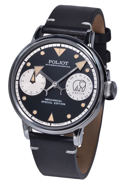 Часовник POLJOT INTERNATIONAL Arctis 9011.1940414 е лимитиран мъжки модел с ръчно навиване, вдъхновен от Арктика. Черен циферблат, Superluminova стрелки и 38 часа енергиен резерв правят този часовник идеален за пътешественици. Ограничен до 100 броя за ценители на изразителен дизайн.