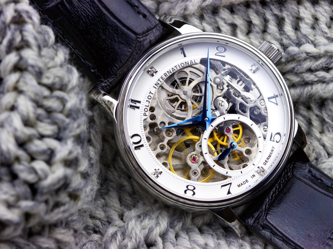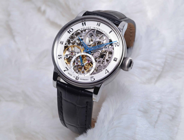 Часовник POLJOT INTERNATIONAL NASTJA 2723.1330101 е елегантен дамски модел с автоматичен механизъм и фино изработен сребърен скелетон циферблат. Индексите на 3, 6, 9 и 12 часа са подчертани с цирконии, което придава изискан блясък. Касата от благородна стомана и кожената каишка подчертават класическата естетика. Този часовник е перфектният баланс между механична прецизност и женствен стил. Наличен в ClassicWatches.bg.