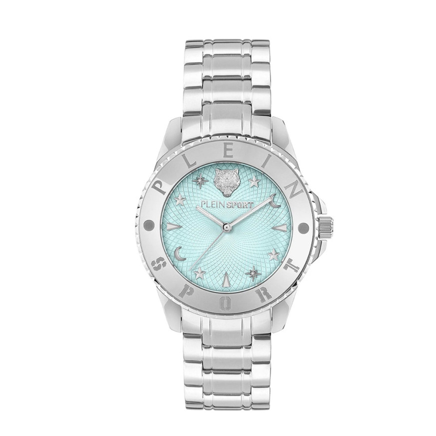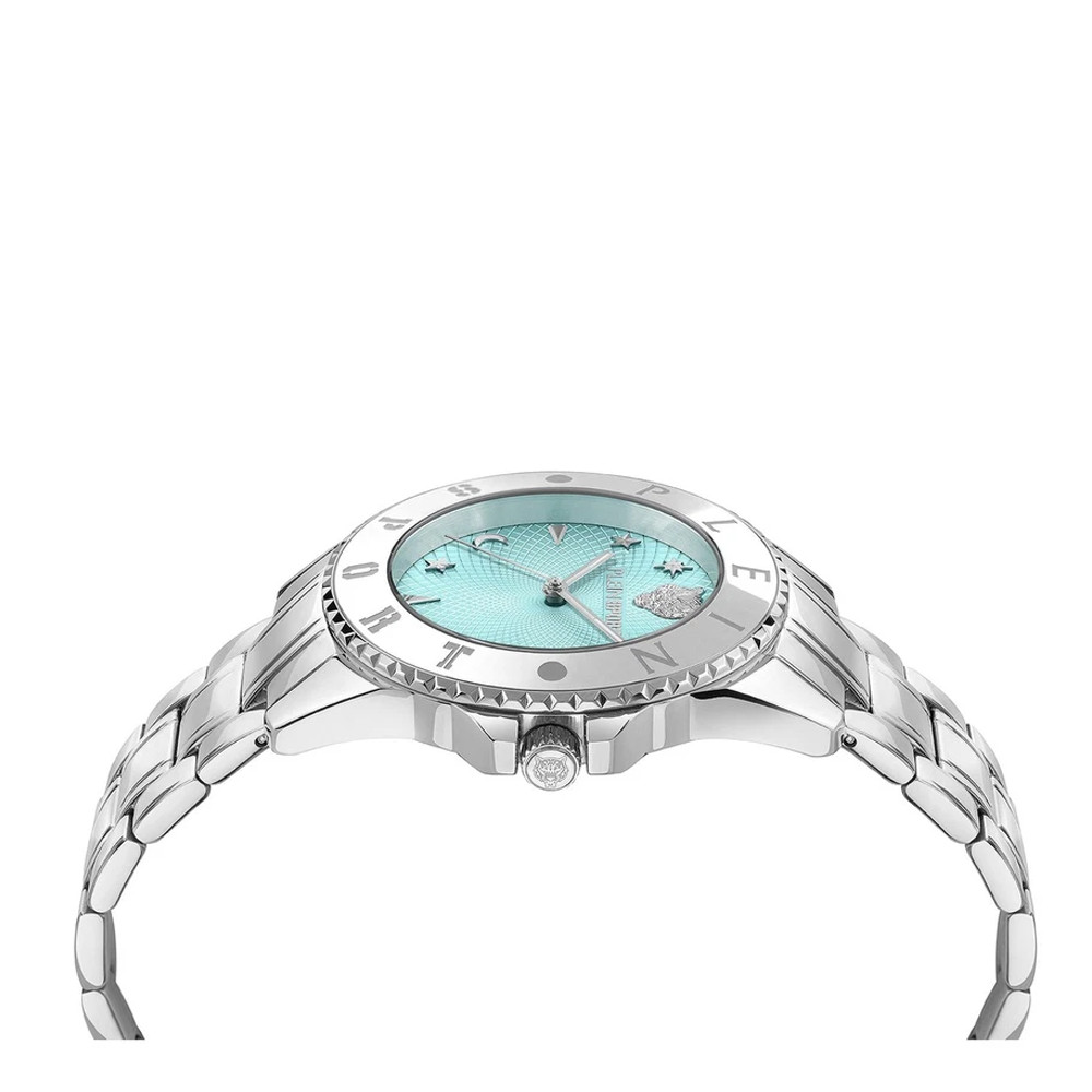 Часовник Philipp Plein PSKBA1525 – дамски спортно-елегантен модел от колекция Plein Sport впечатлява със своята модерна визия и стилен син циферблат със сребристи детайли. Корпусът и верижката от неръждаема стомана осигуряват надеждност и комфорт при носене, а минерал-кристалното стъкло предпазва от надраскване. С водоустойчивост до 5 ATM, моделът е подходящ за ежедневна употреба. Захранван от кварцов механизъм, този елегантен часовник е перфектен избор за жени, които търсят баланс между изисканост и практичност.