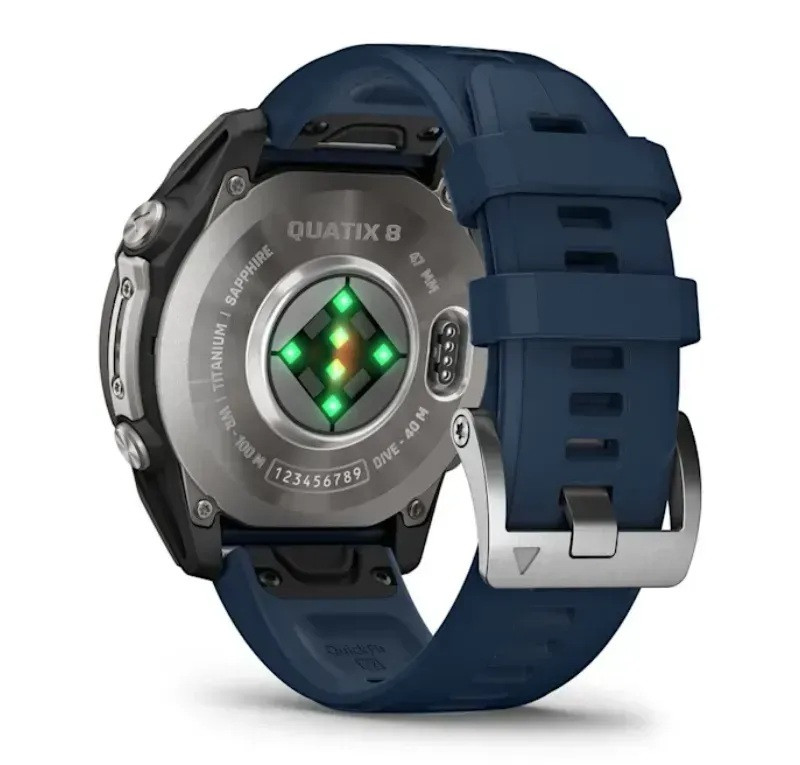 Garmin Quatix 8 51 mm AMOLED е мултифункционален смарт часовник, създаден за морски приключения и активен живот. Със здрав титаниев корпус, устойчив сапфирен екран и ярък 1.4" AMOLED дисплей, моделът впечатлява както с издръжливост, така и с елегантна визия. Предлага иновативни функции като гласово управление на картографа, LED фенер, стрийминг на данни за лодката, GPS, мониторинг на съня, пулс, VO2 max, ECG и още. Перфектен за гмуркане, плаване, спорт и тренировки, Quatix 8 е незаменим помощник за всеки, който търси пълна свобода и контрол – на вода или на суша.